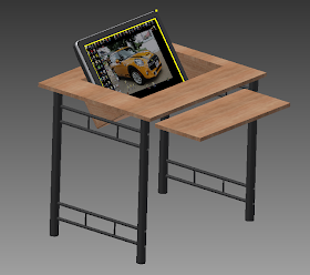 I immediately went to work using my CAD software on my new modifications that I wanted for my desk. I could not modify my original desk top as it would have been more difficult to complete than starting from scratch. So I would make what you see in the image above. The monitor after having removed the stand it is normally mounted on would rest in a cavity built into the desk top and still be able to use the original platform for the keyboard and mouse. The trick was making the cavity fit in between the rails for the sliding keyboard platform.